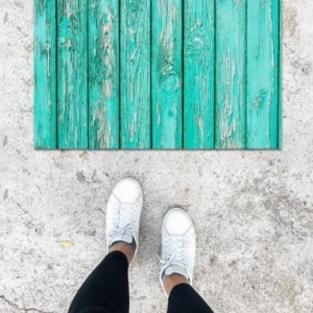 Dijital Baskı Mavi Ahşap Kapı Desen Kapı Önü Paspası K-1045