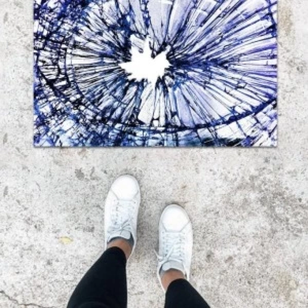 Dijital Baskı Mavi Kırık Cam Desen Kapı Önü Paspası K-1010