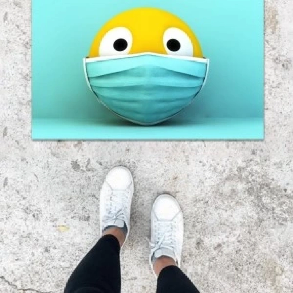 Dijital Baskı Mavi Maskeli Emoji Desen Kapı Önü Paspası