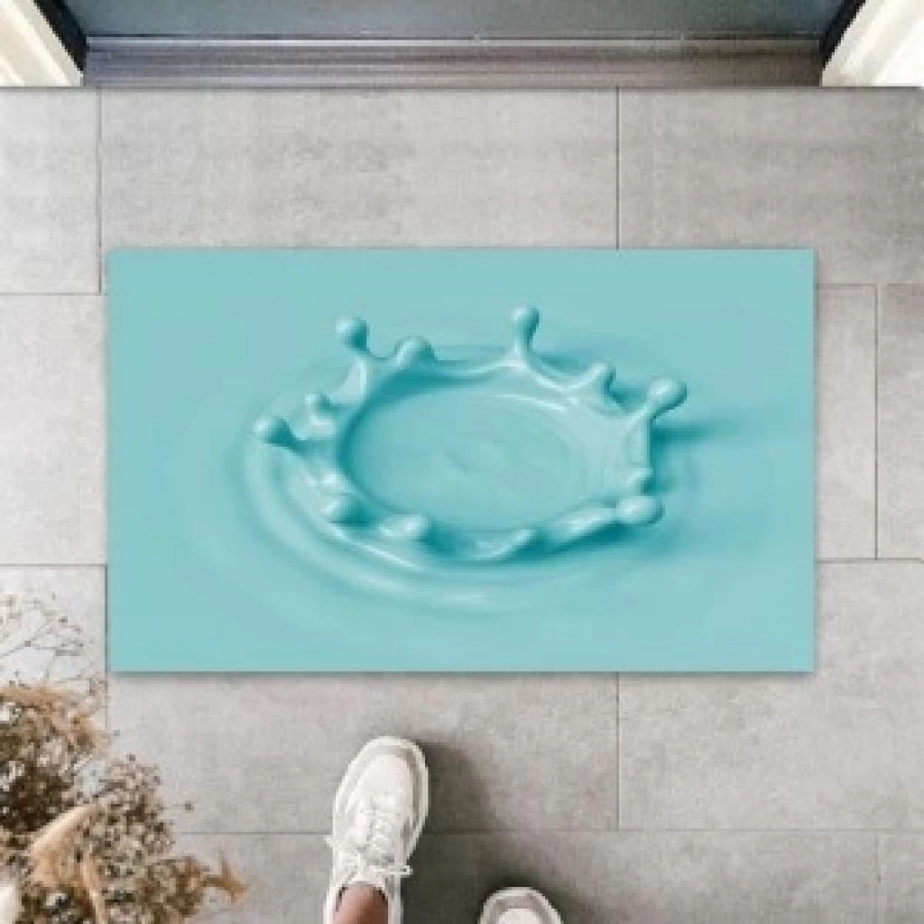 Dijital Baskı Mavi Su Damlası Paspas K-3137