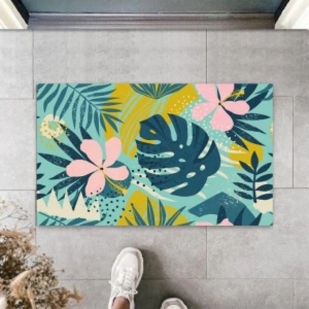 Dijital Baskı Mavi Yaprak Paspas K-3093