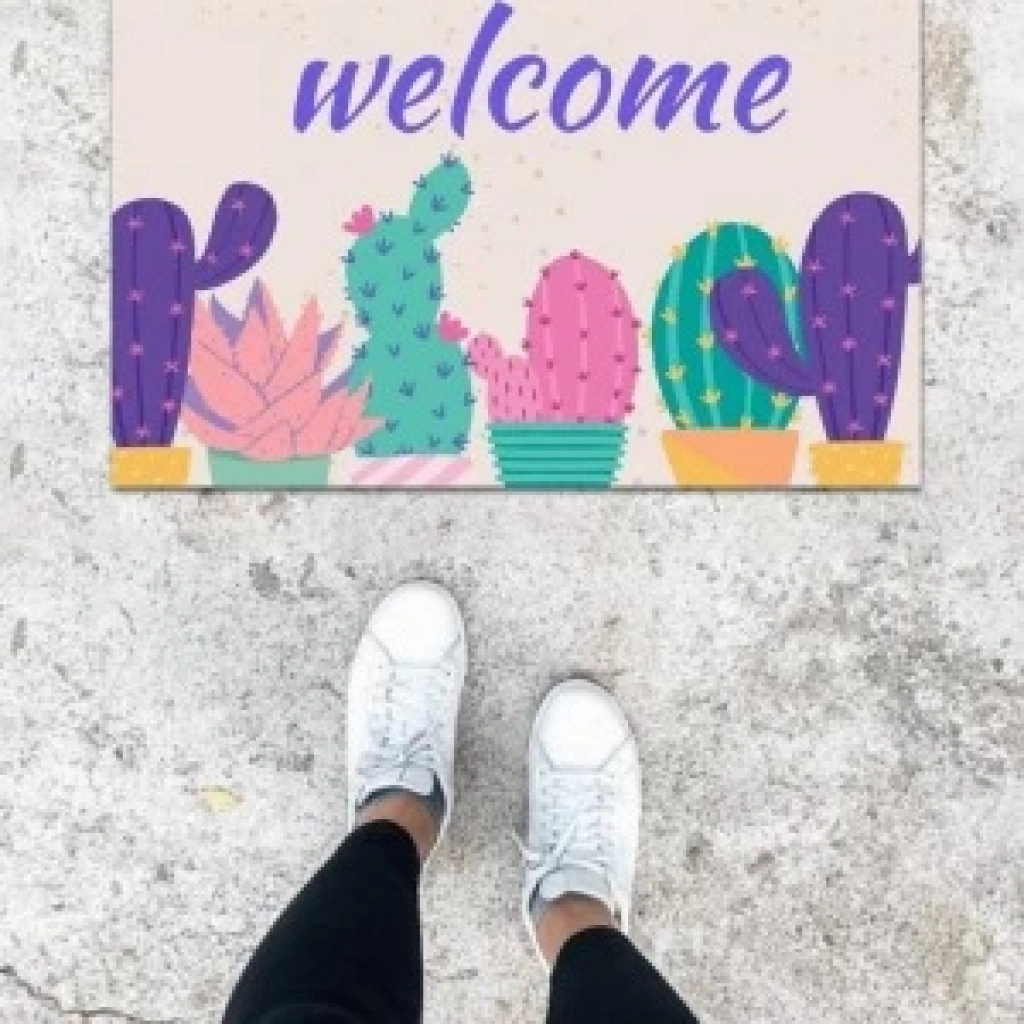 Dijital Baskı Mor Kaktüs Desen Kapı Önü Paspası K-1013