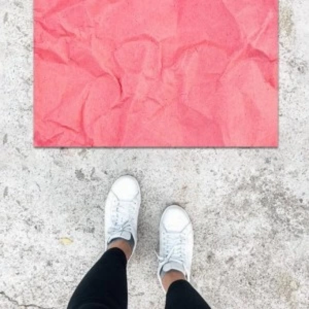 Dijital Baskı Pembe Buruşuk Kağıt Desen Kapı Önü Paspası K-1067