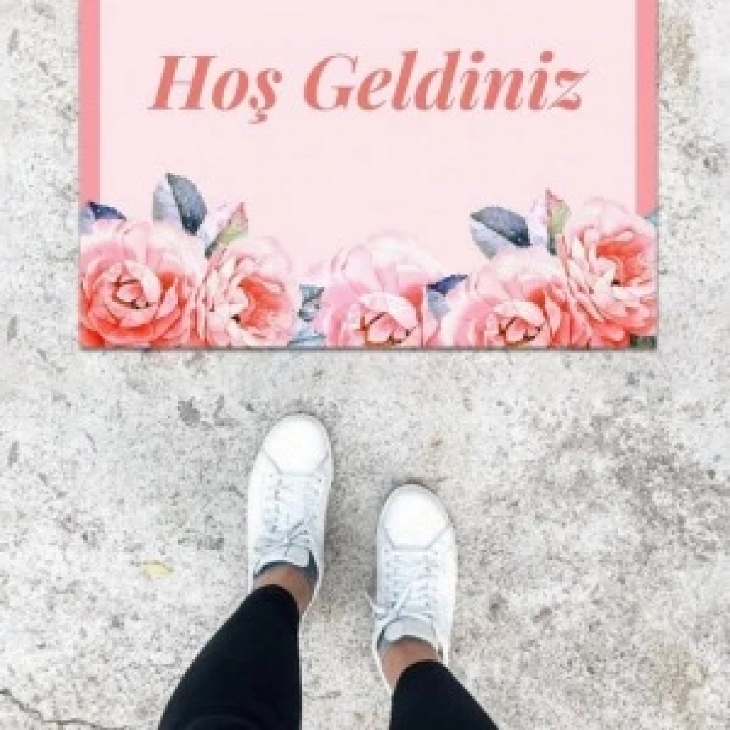 Kapı Önü Paspası Kişiye Özel Yazı Yazılır Koko Model Çiçek Şerit Pk-1526