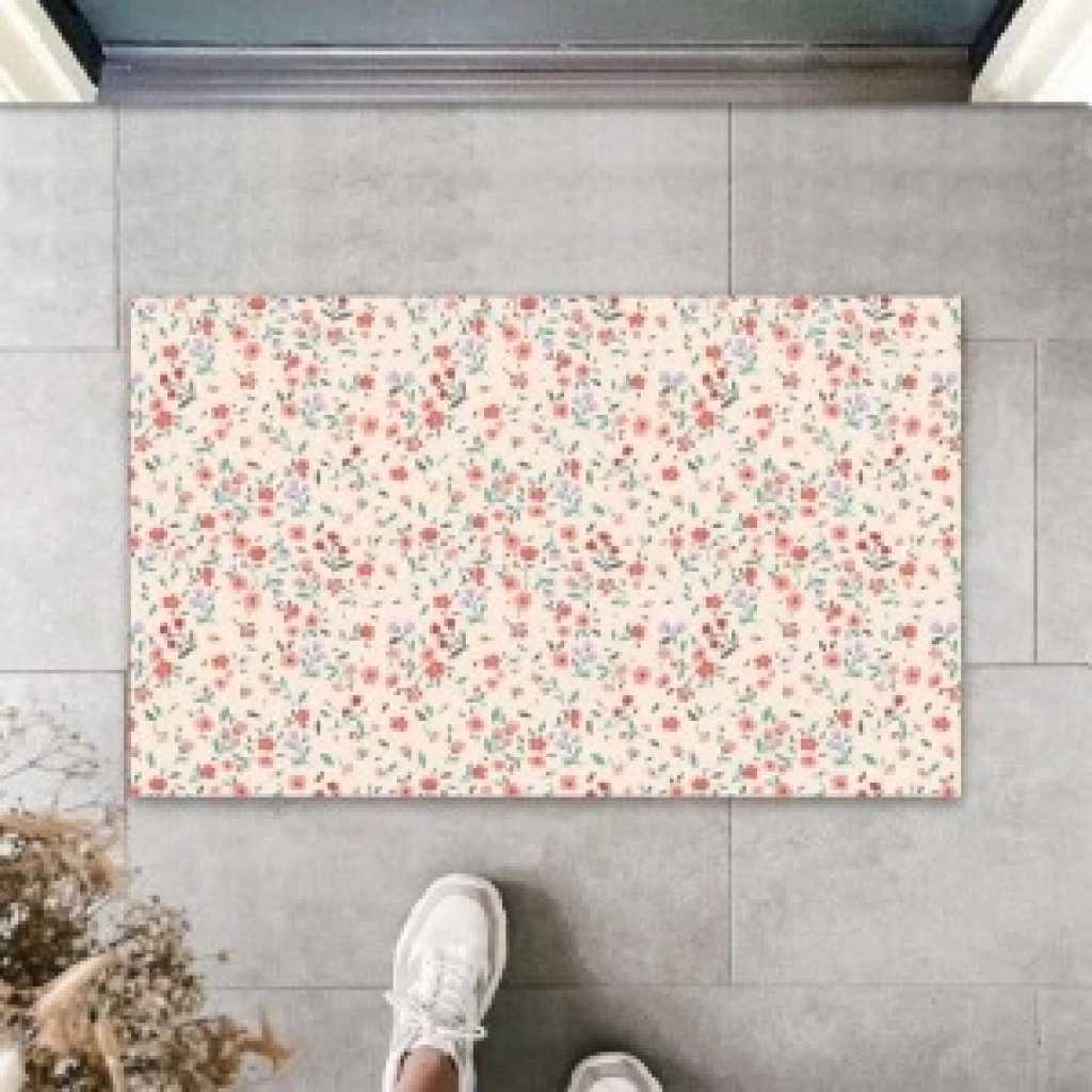 Dijital Baskı Pembe Küçük Çiçek Kapı Paspası K-3101