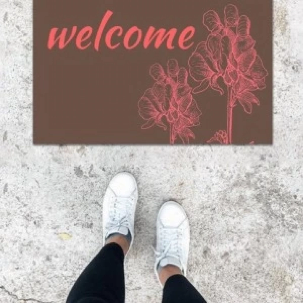 Kapı Önü Paspası Kişiye Özel Yazı Yazılır Koko Model Çiçek Şerit Pk-1526