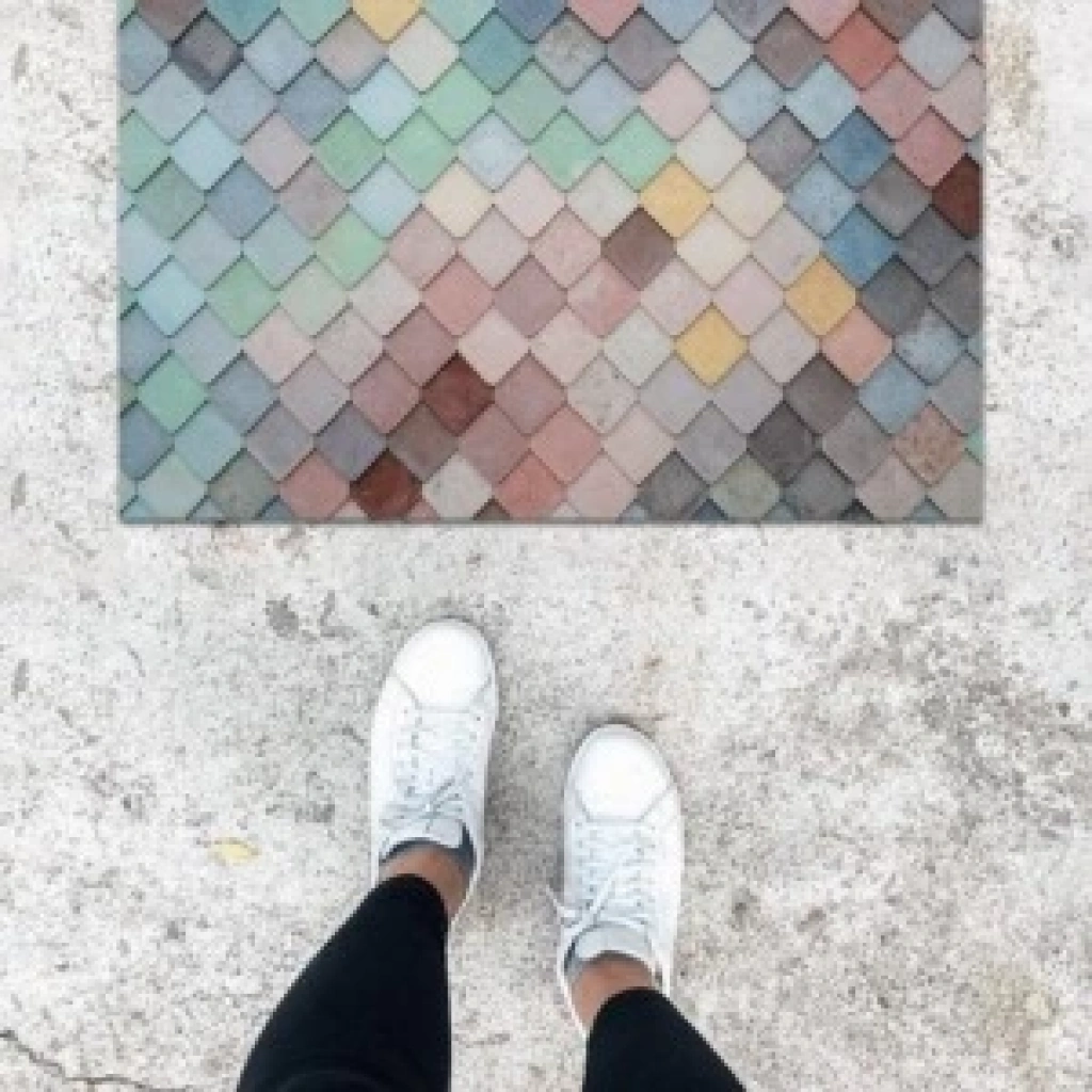 Dijital Baskı Renkli Çatı Desen Kapı Önü Paspası K-1065