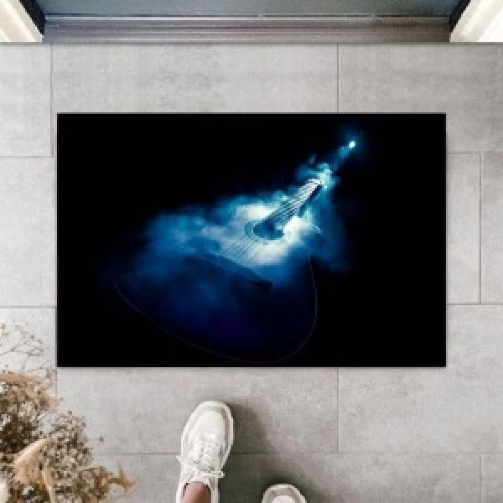 Dijital Baskı Siyah Mavi Gitar Kapı Paspası K-2111