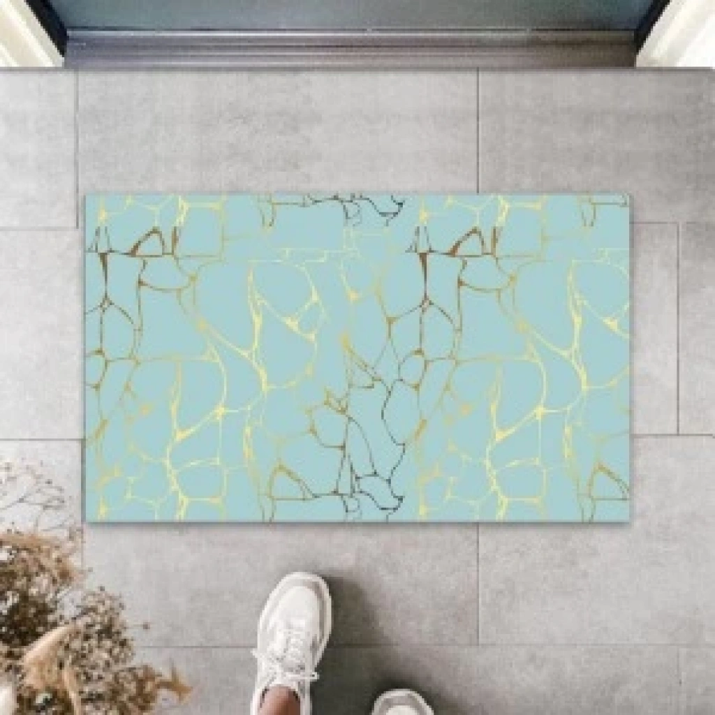 Dijital Baskı Turkuaz-gold Ebruli Kapı Paspası K-3079