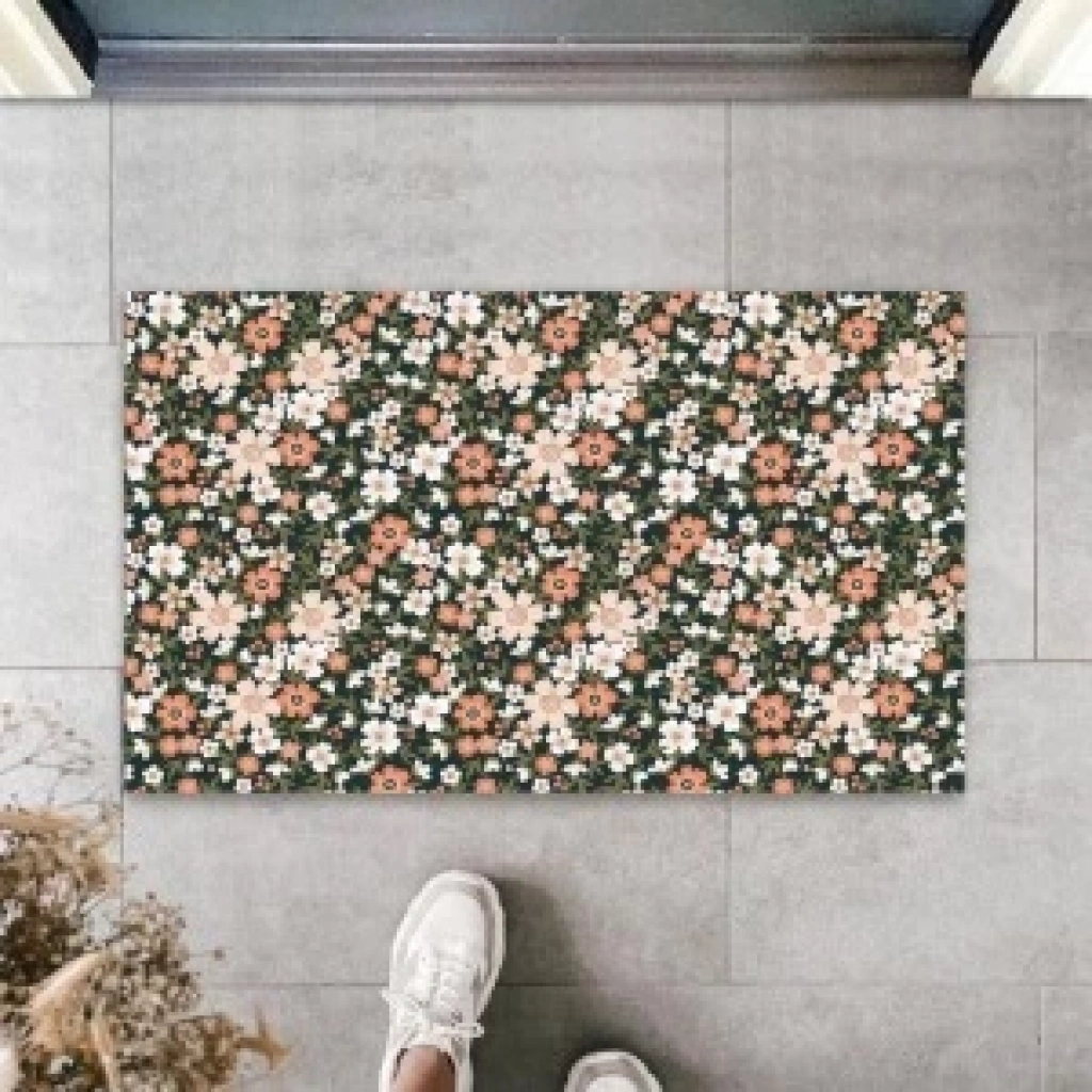 Dijital Baskı Turuncu Küçük Çiçek Kapı Paspası