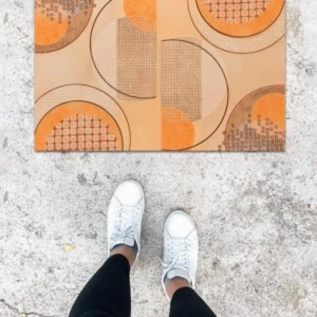 Dijital Baskı Turuncu Yuvarlak Desen Kapı Önü Paspası K-1077