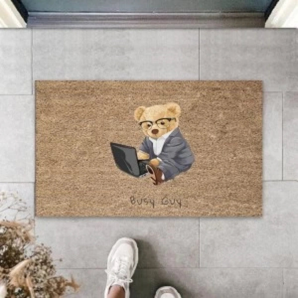 Dijital Busy Guy Ayıcık Bej Kapı Paspası Dış Mekan Paspas K-3169