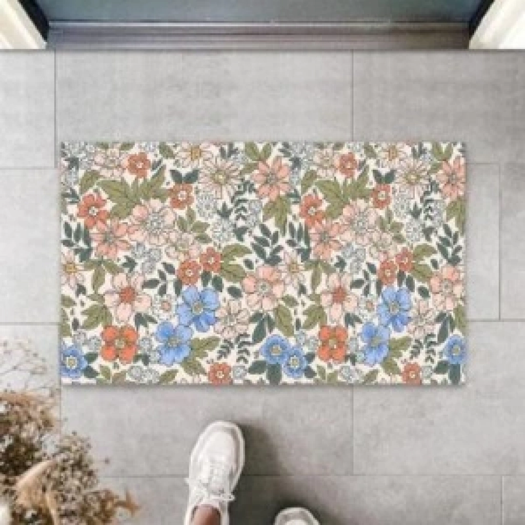 Dijital Çoklu Çiçekler Pempe Kapı Paspası Dış Mekan Paspas K-3054