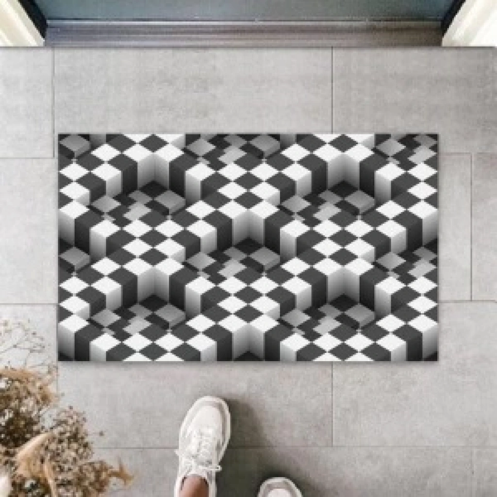 Dijital D Kare Siyah-beyaz Kapı Paspası Dış Mekan Paspas K-3161