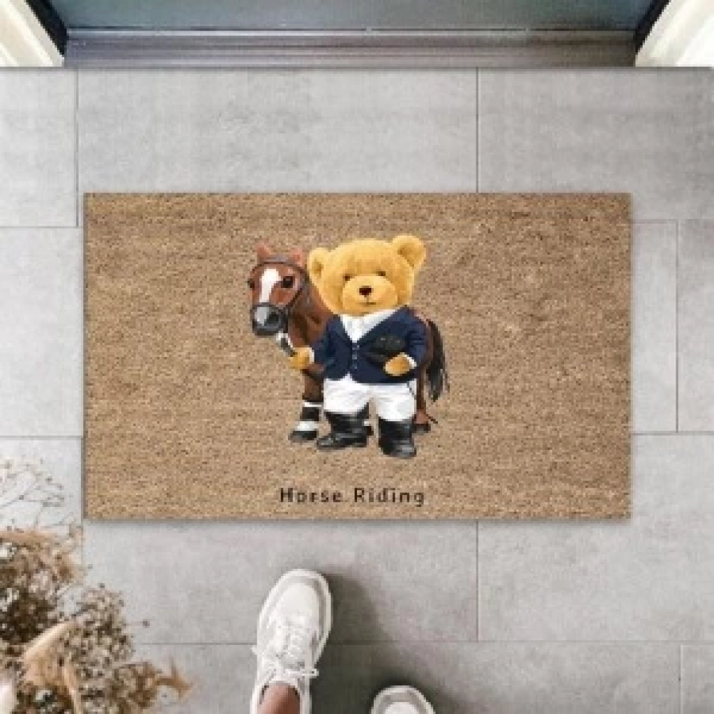 Dijital Horse Riding Ayıcık Bej Kapı Paspası Dış Mekan Paspas K-3184