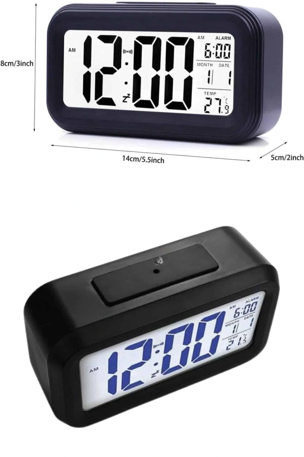 Akıllı Dijital Masa Saati Alarmlı Karanlık Sensörlü Fotoselli Siyah