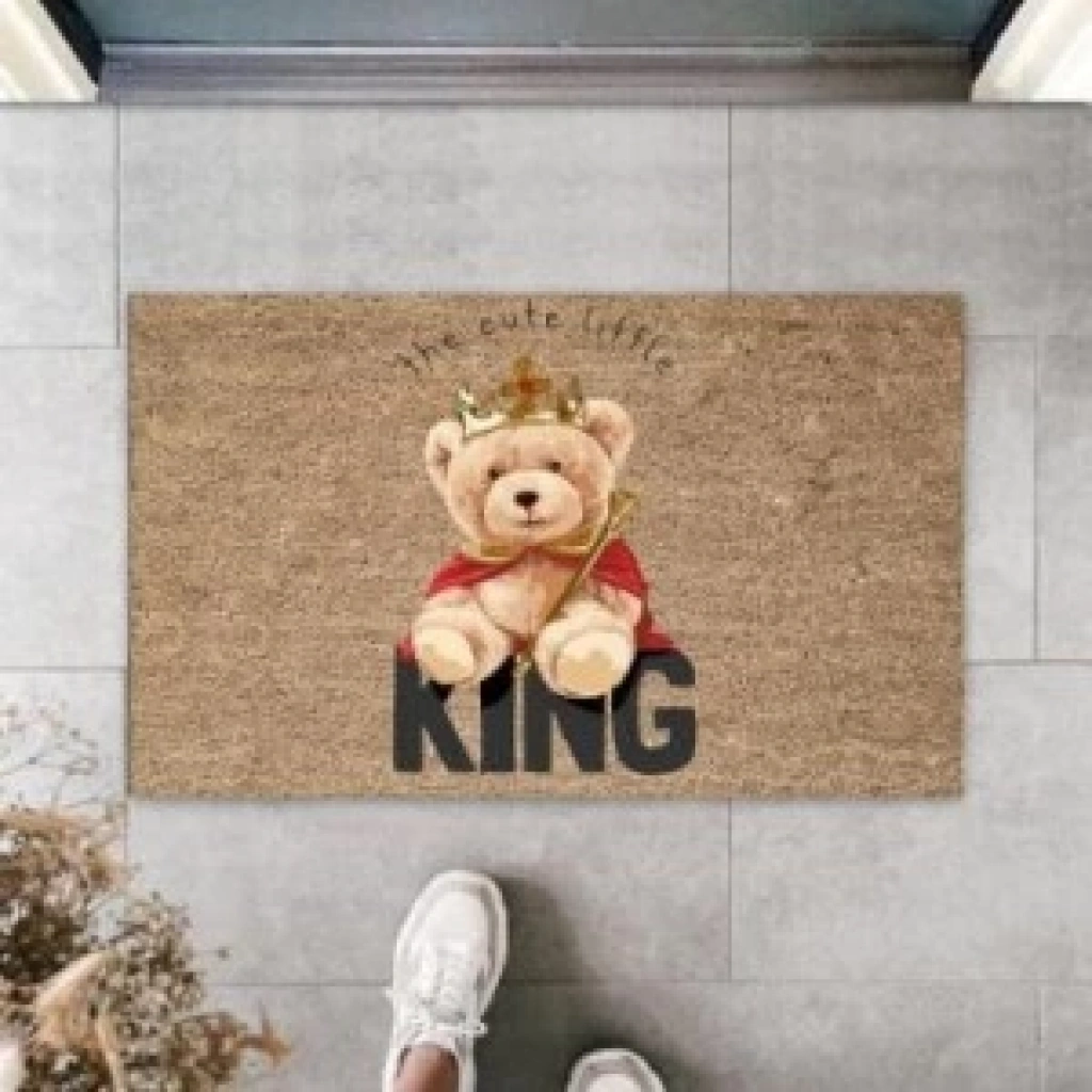 Dijital Kıng Ayıcık Bej Kapı Paspası Dış Mekan Paspas K-3177
