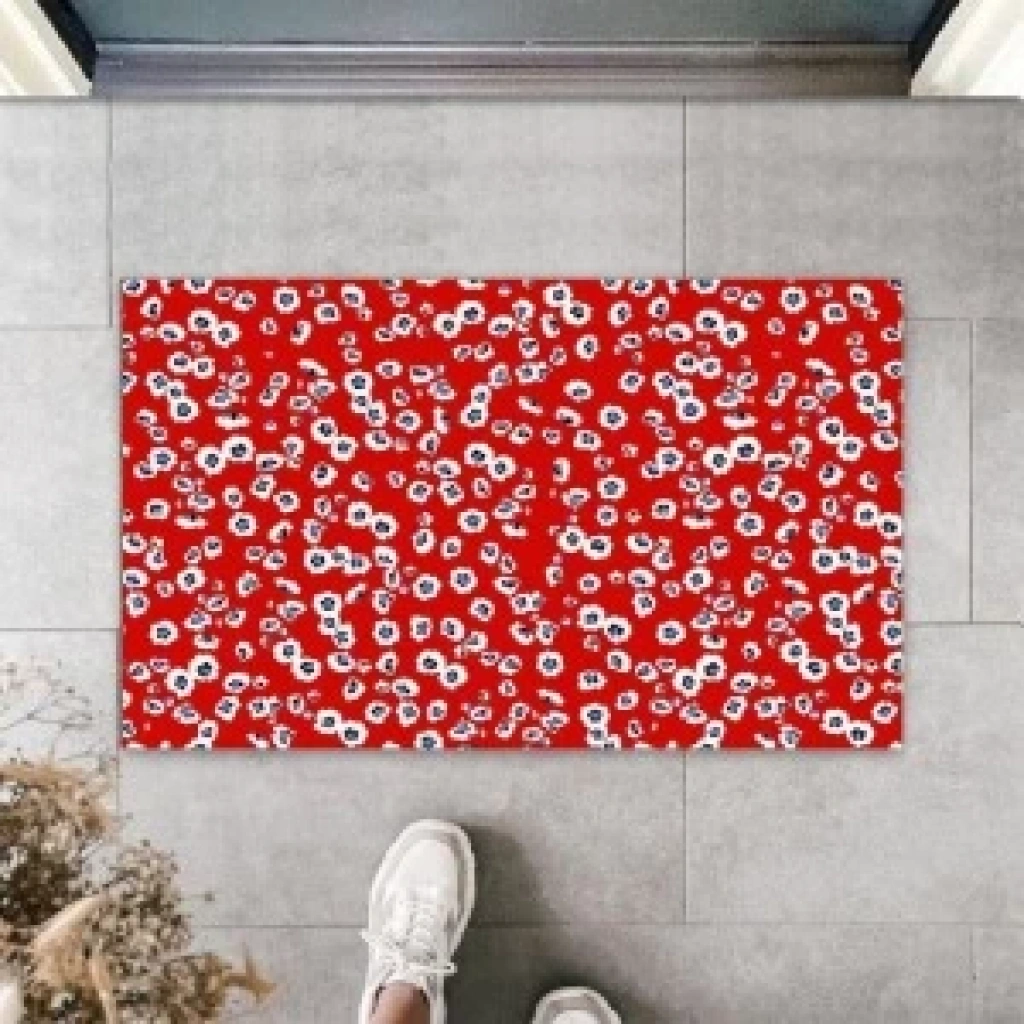 Dijital Küçük Çiçekler Kırmızı Kapı Paspası Dış Mekan Paspas K-3103