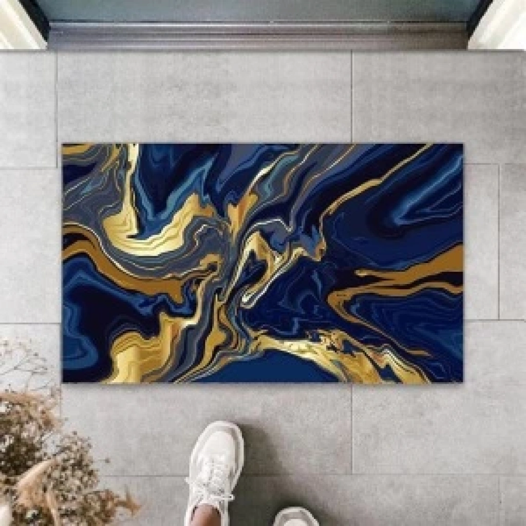 Dijital Modern Dalgalı Lacivert Kapı Paspası Dış Mekan Paspas K-3102