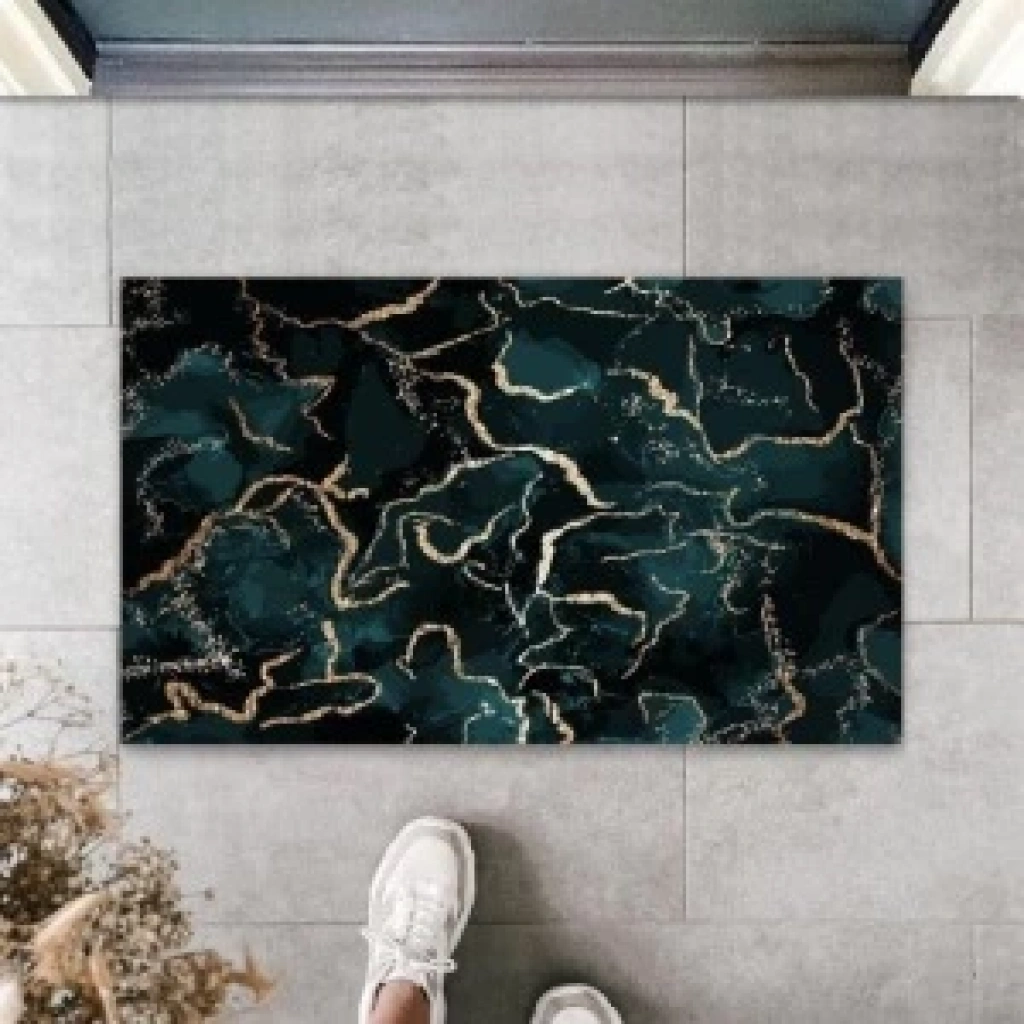 Dijital Modern Yeşil-gold Kapı Paspası Dış Mekan Paspas K-3129