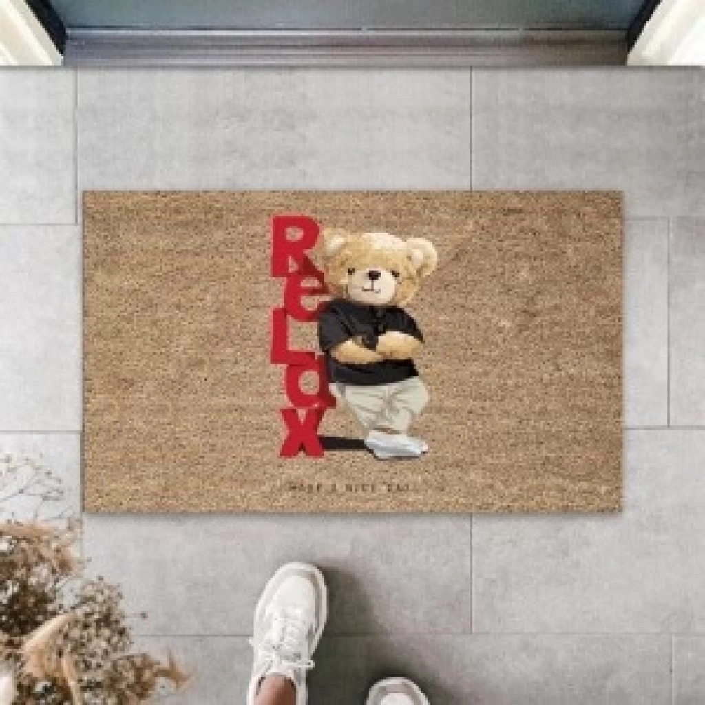 Dijital Relax Ayıcık Bej Kapı Paspası Dış Mekan Paspas K-3192