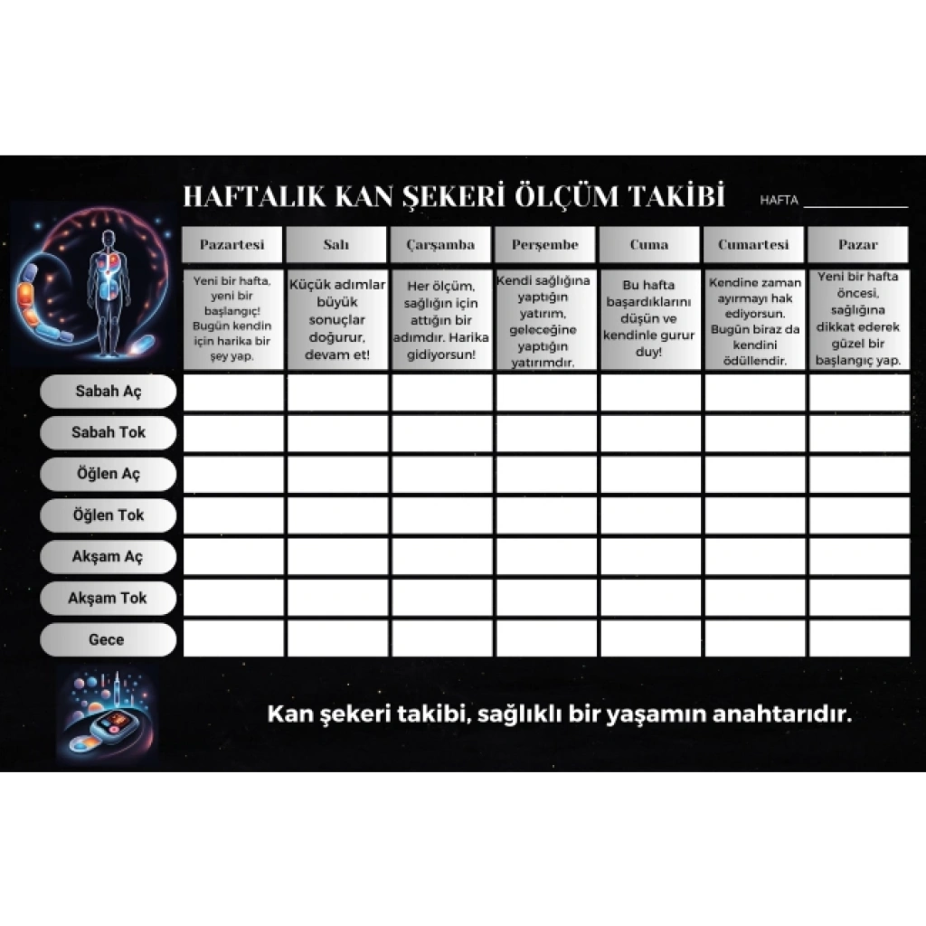 Diyabet Ölçüm Takip Çizelgesi Defteri A Kalite Özel Tasarım 6 Aylık A6 Boyut Yüksek Motiveli