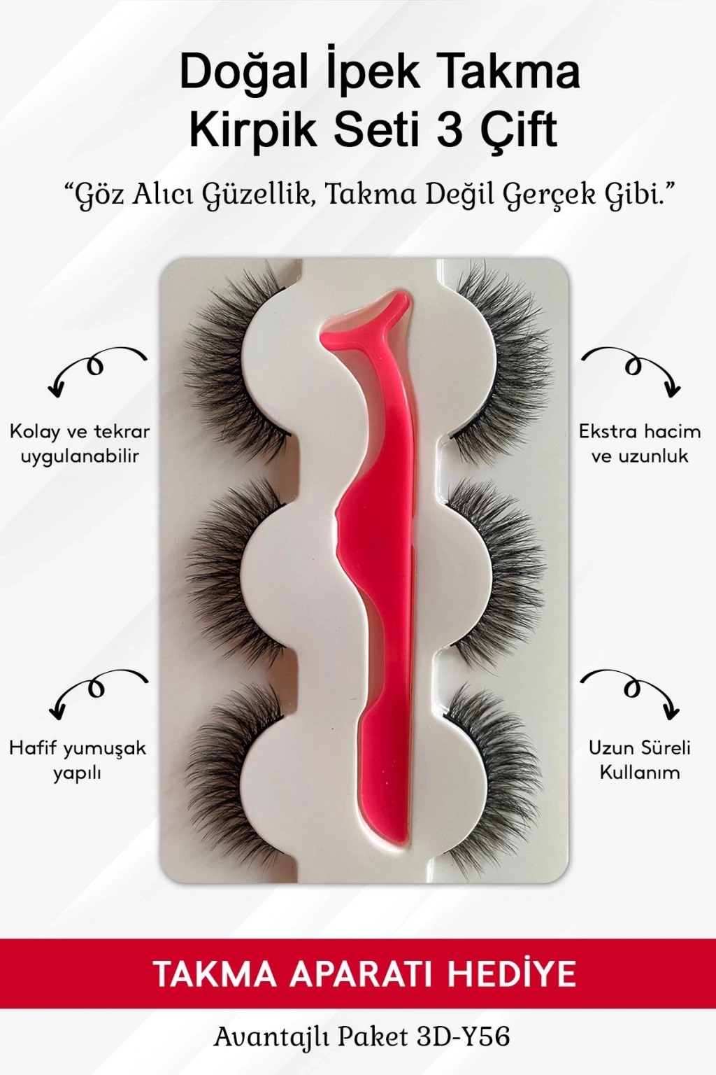 Doğal İpek Takma Kirpik 3 Çift + Kirpik Takma Aparatı 3d-32
