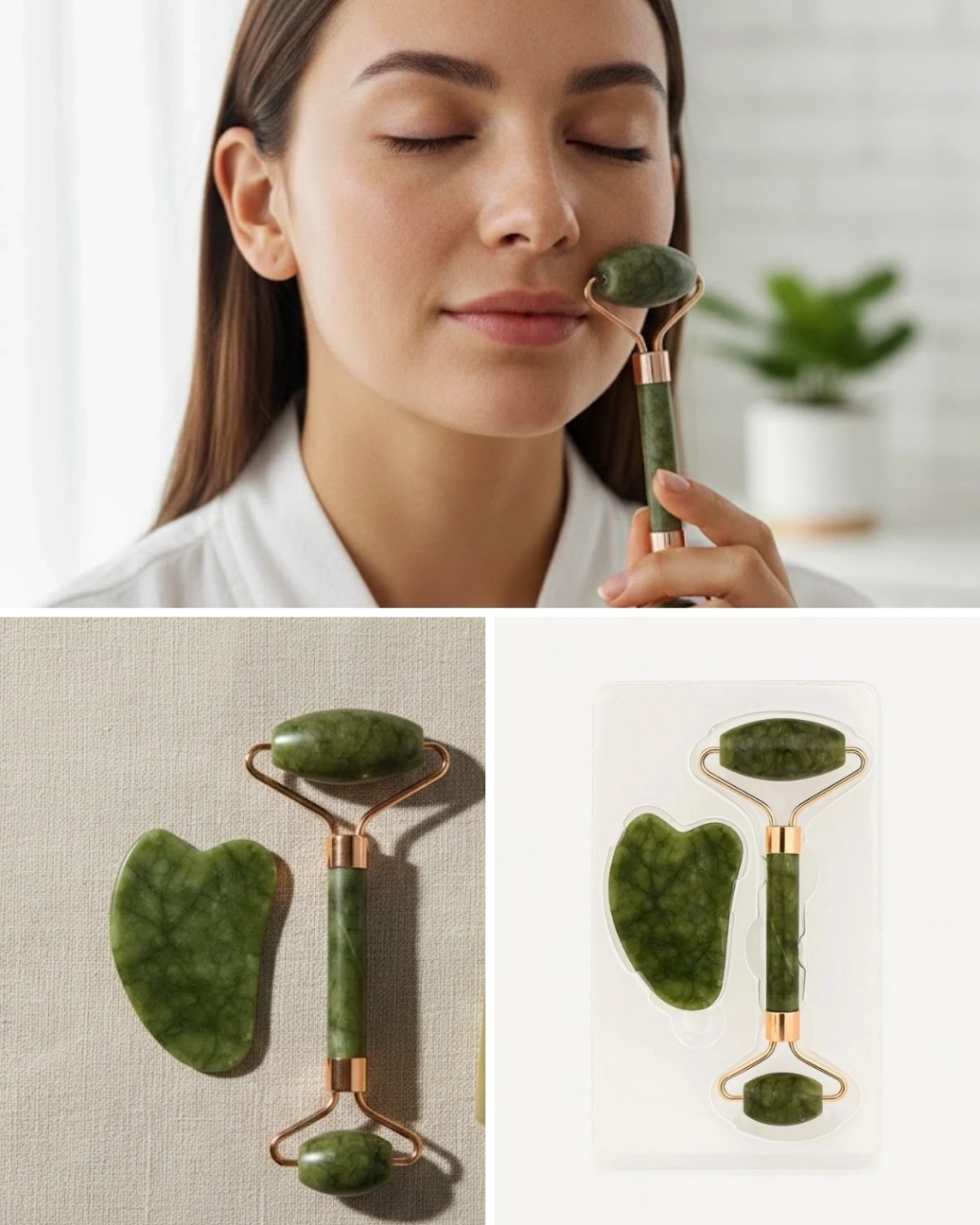 Doğal Yeşim Roller ve Gua Sha Yüz Şekillendirme Seti