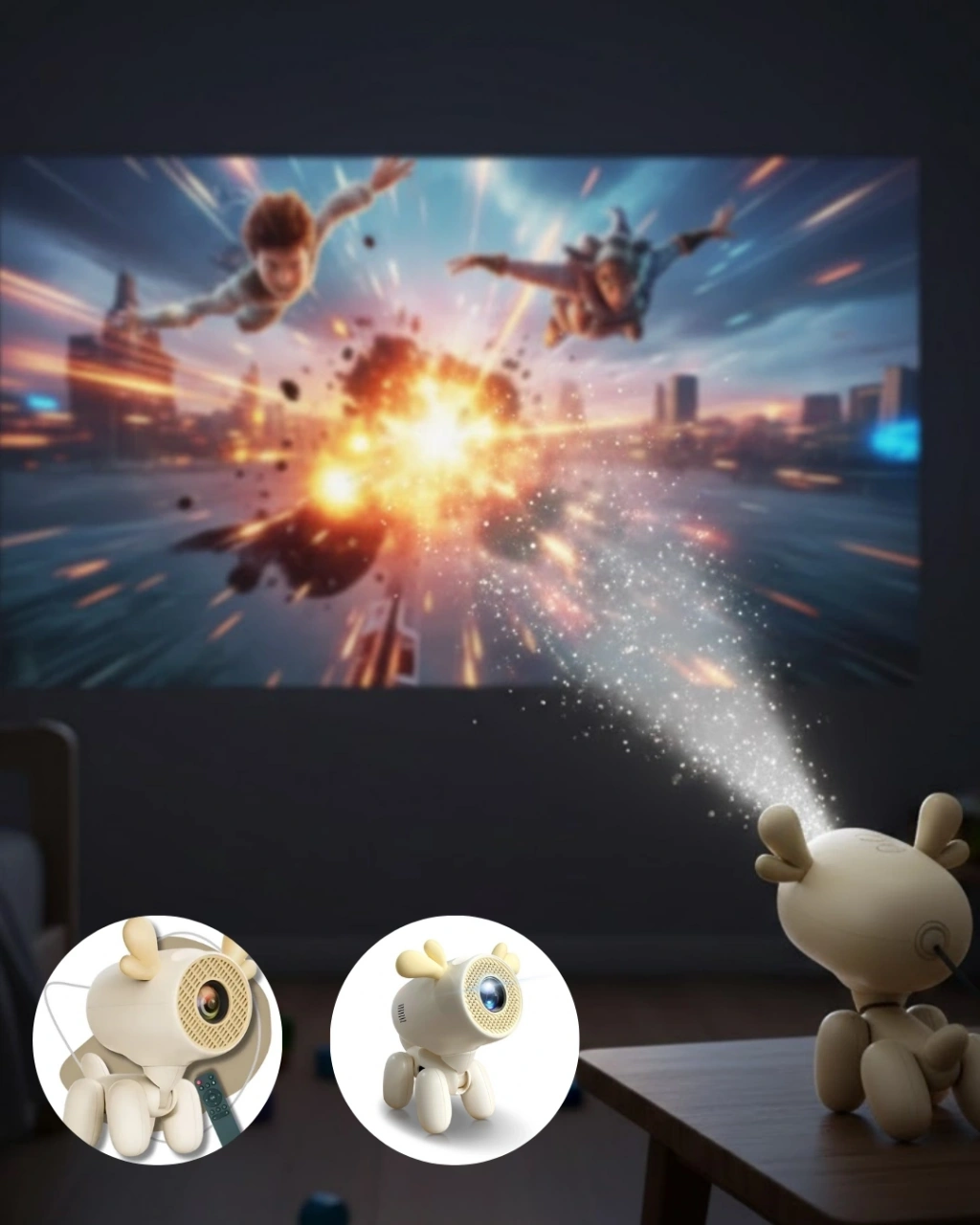 Geyik Tasarımlı Akıllı Projeksiyon 4K Destekli 500 ANSI Lümen