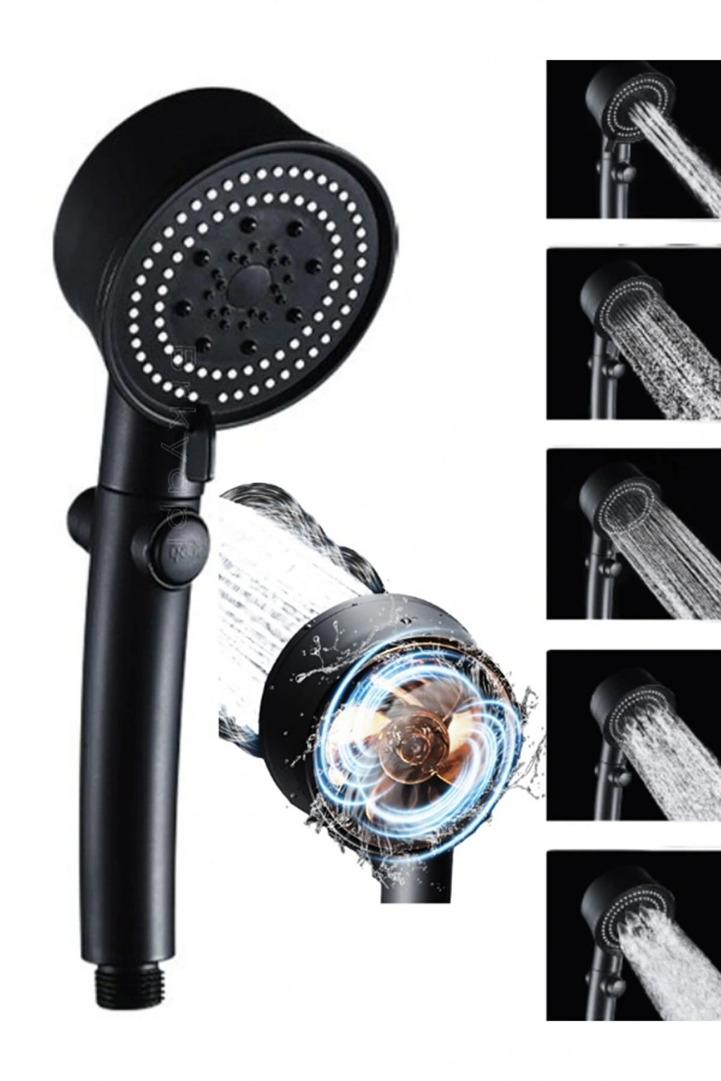 5 modları ayarlanabilir Turbo duş başlığı iç pamuk filtre ile tek anahtar banyo su tasarrufu duş Fan