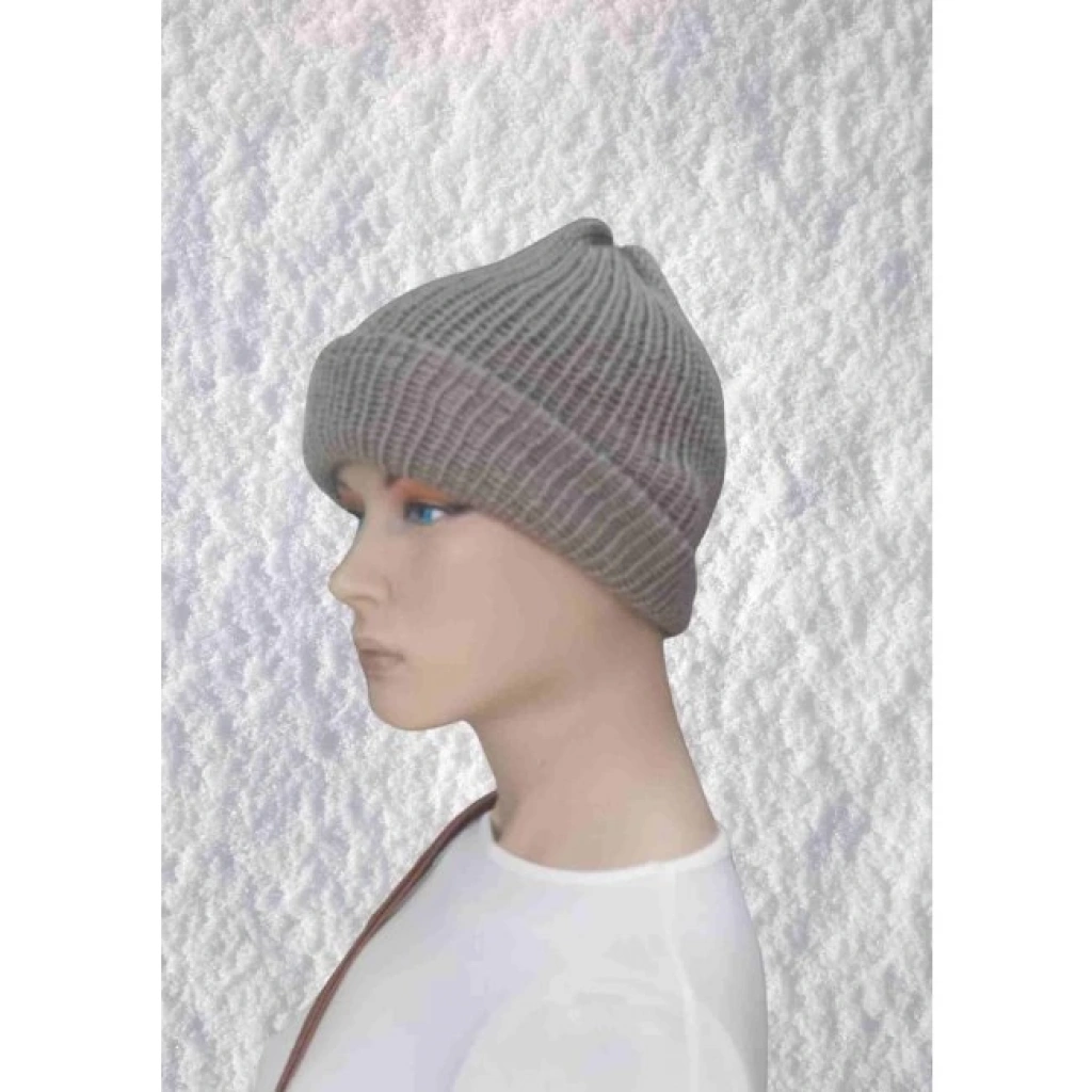 El Örgüsü Doğal Yün Ve Akrilik Karışımlı Sıcacık Kış Beresi Gri Karışık Renk
