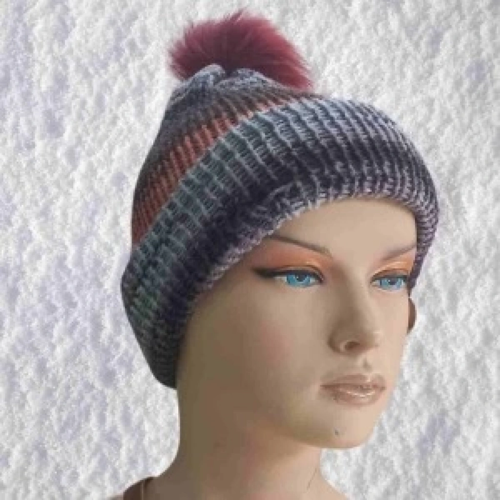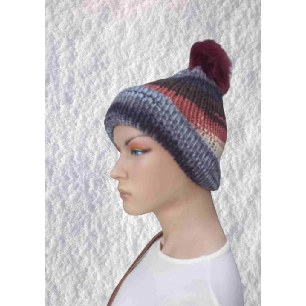 El Örgüsü Doğal Yün Ve Akrilik Karışımlı Sıcacık Kış Beresi Mor Gri Karışık Renk