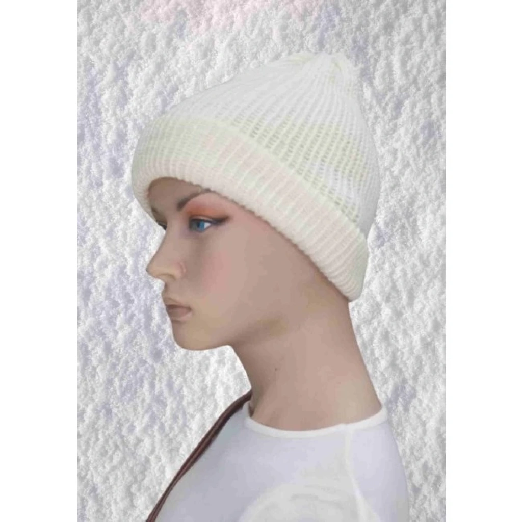El Örgüsü Doğal Yün Ve Akrilik Karışımlı Sıcacık Kış Beresi Krem Renk