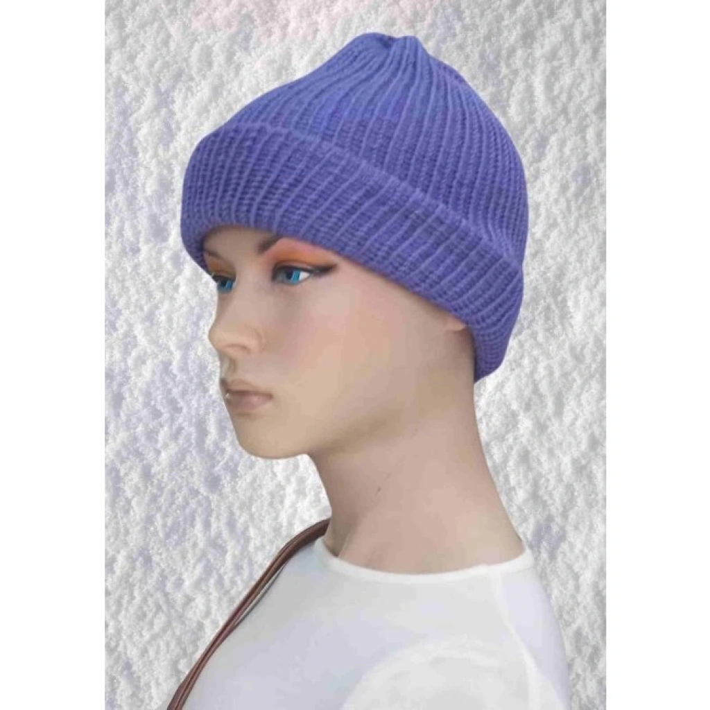 El Örgüsü Doğal Yün Ve Akrilik Karışımlı Sıcacık Kış Beresi Mor Renk