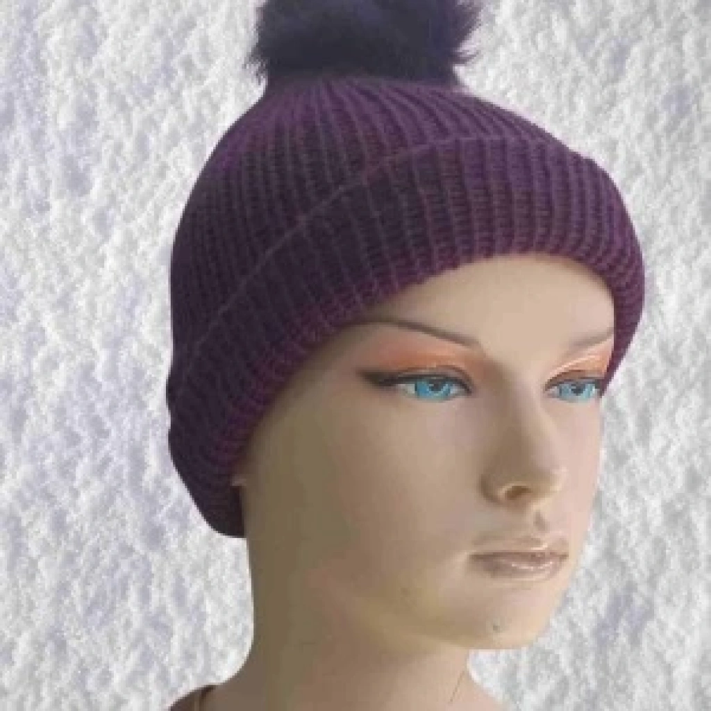 El Örgüsü Doğal Yün Ve Akrilik Karışımlı Sıcacık Kış Beresi Mürdüm Renk