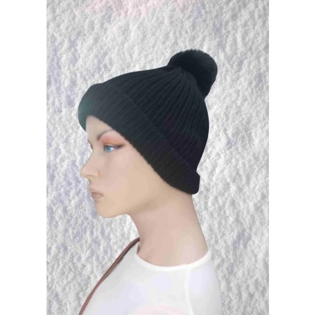 El Örgüsü Doğal Yün Ve Akrilik Karışımlı Sıcacık Kış Beresi Siyah Renk