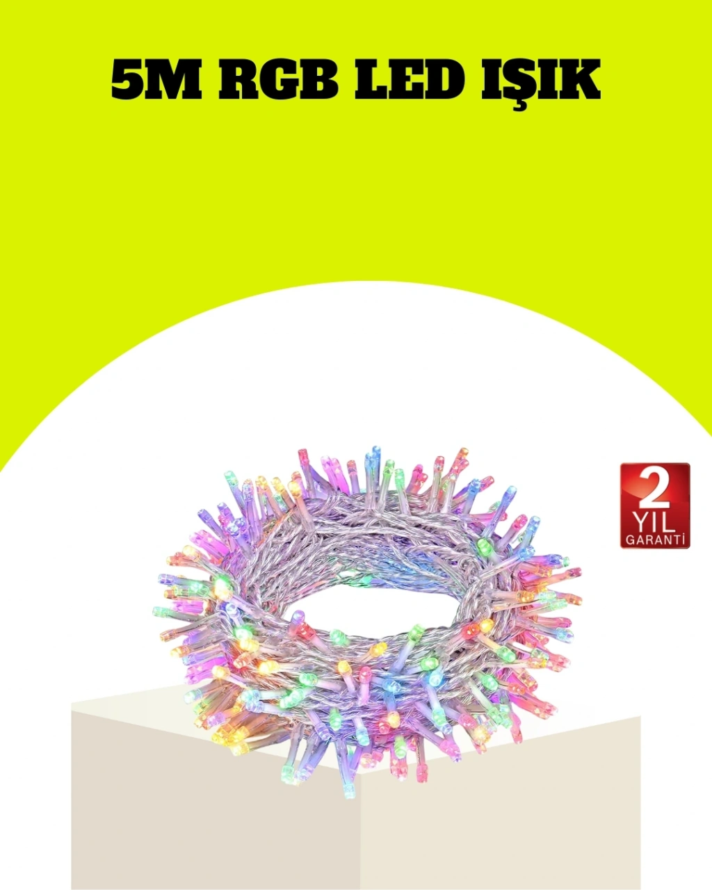 Enerji Tasarruflu Şeffaf Kablo 5 m 50 LED Dekor Işık
