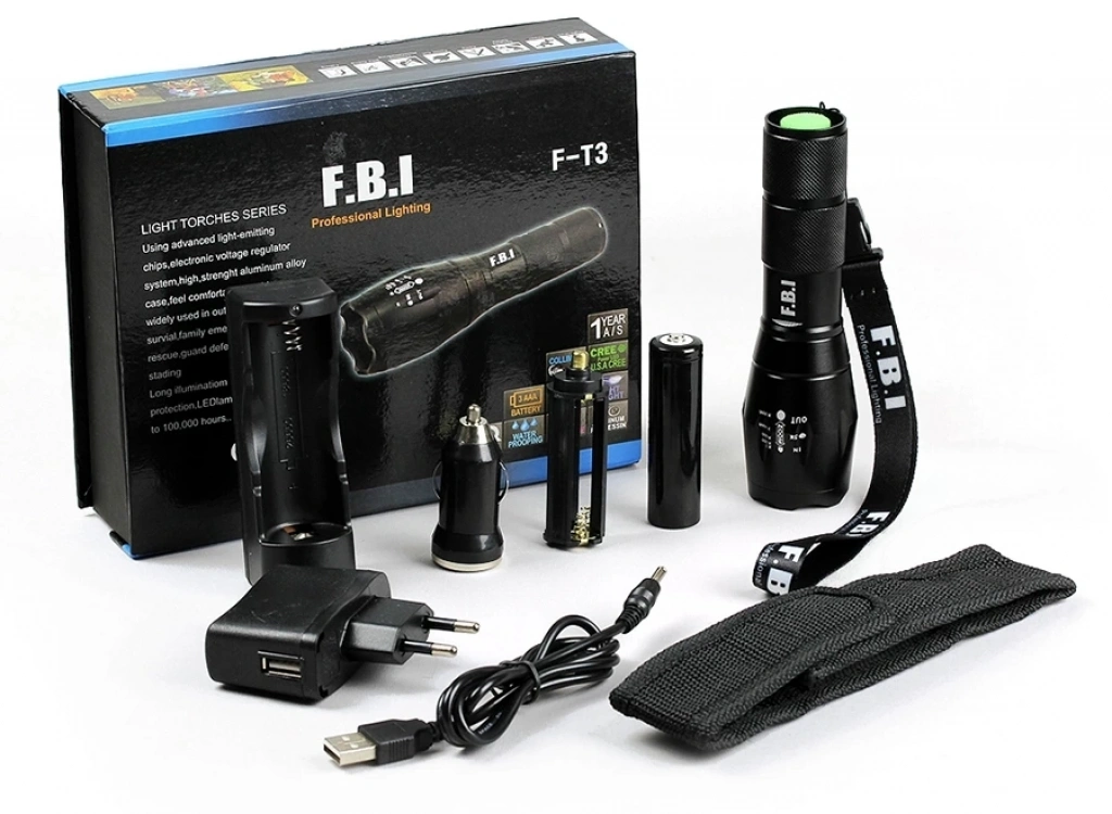 1 Adet F-T3 Su Geçirmez Şarjlı El Feneri 1 Adet Taşıma Kılıfı 1 Adet Taşıma İpi 1 Adet Şarj Adaptörü 1 Adet USB Şarj Kablo 1 Adet Araç Çakmaklığı 1 Adet 18650 Pil + Pil Yuvası 1 Adet Şarj Cihazı