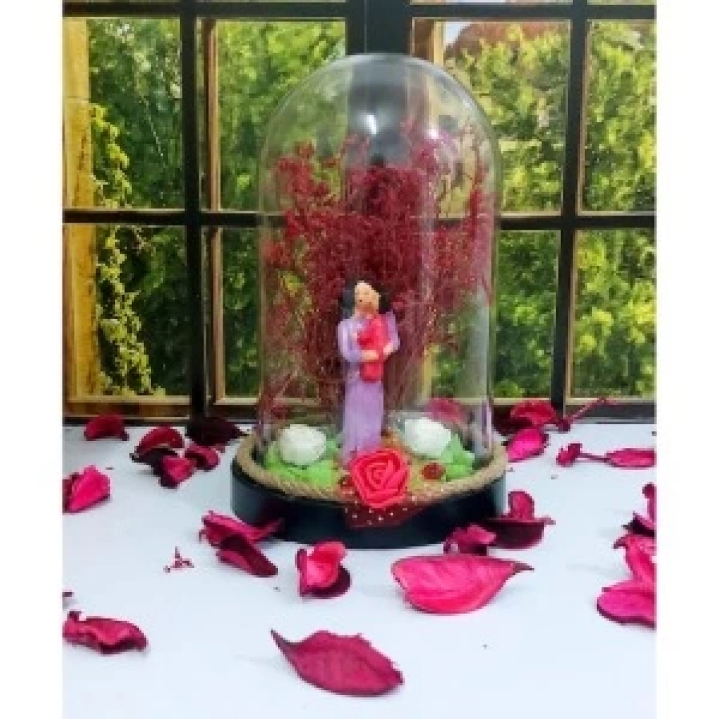 Fanus Teraryum Anneye Hediye Kucakta Bebek Ve Anne Figürlü Kuru Çiçekli