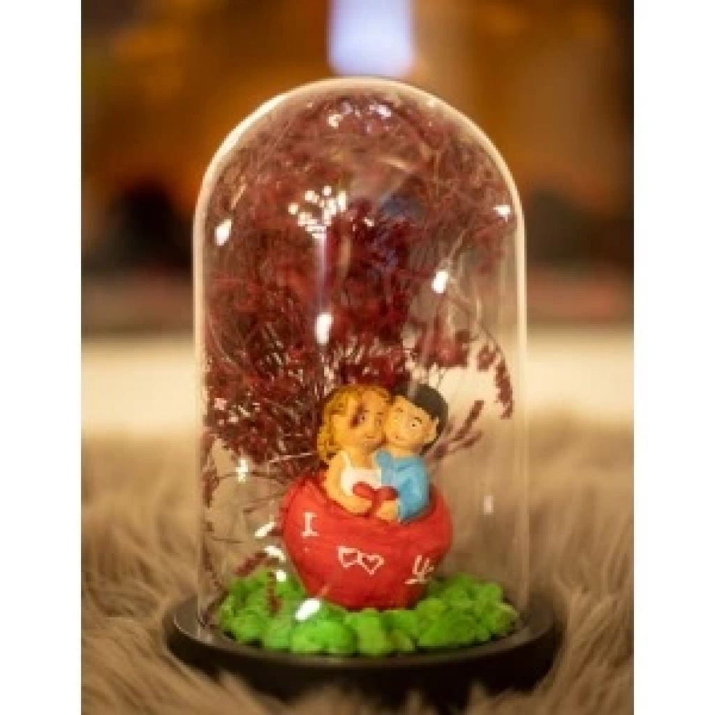 Fanus Teraryum Sevgiliye Hediye Sevgili Figürlü Işıklı Kuru Çiçekli