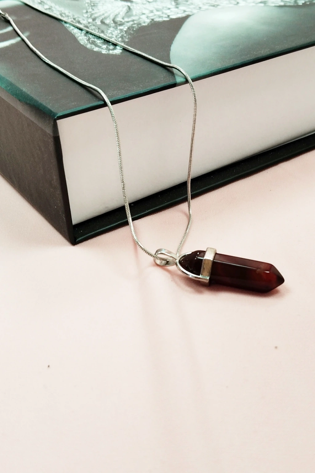 Yakut Doğal Taşı Zincirli El Yapımı Tasarımlı Kolye Uç: 3,5 cm Zincir: 20 cm Kutulu