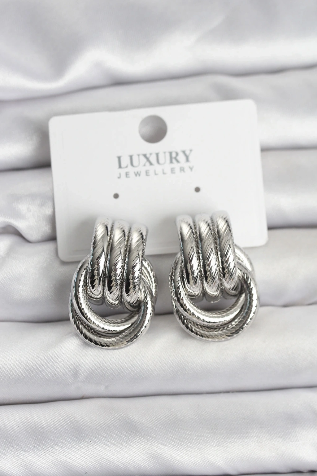 Gümüş Renk Halka Modelli Pirinç Kadın Küpe
