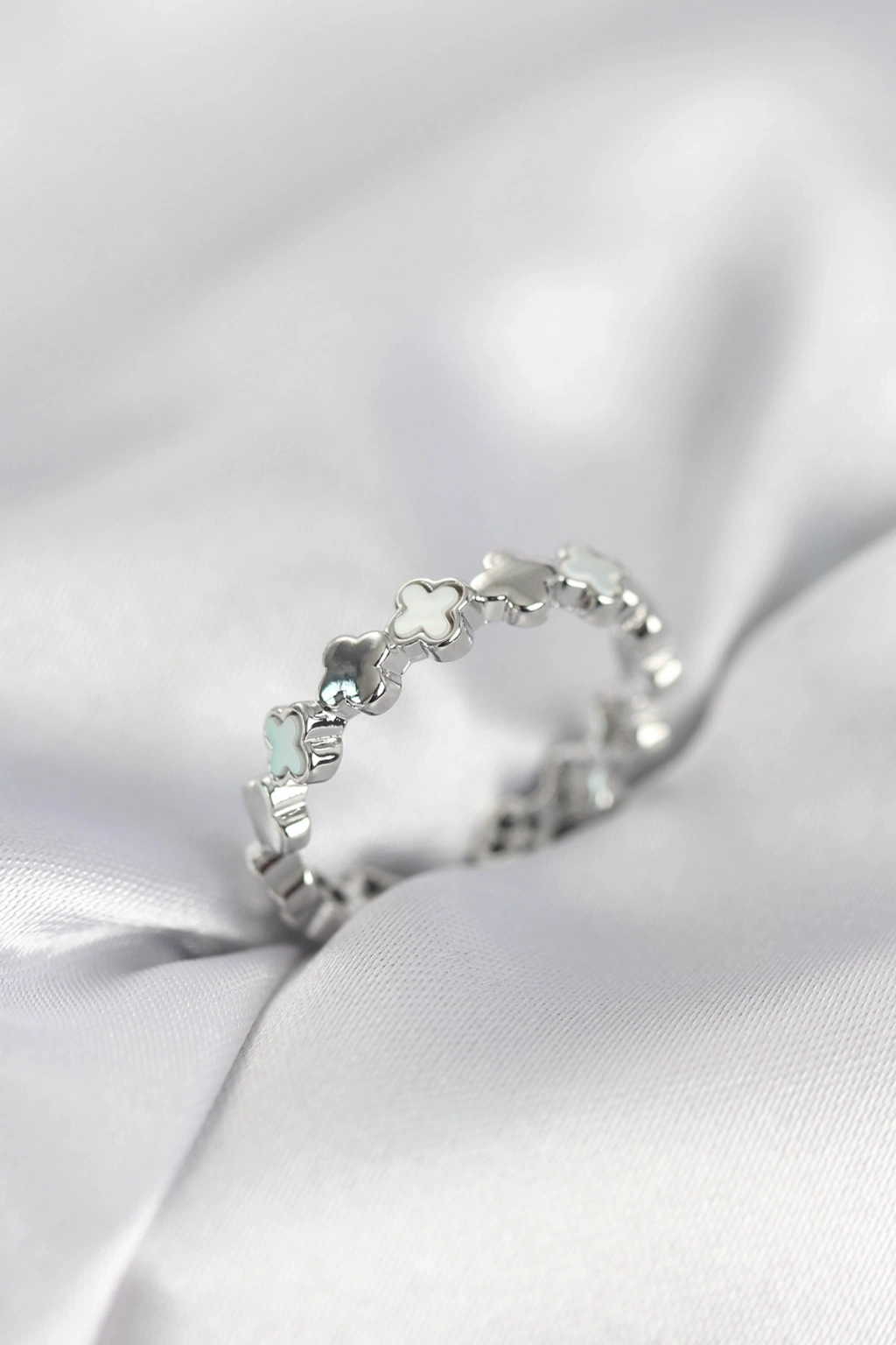 Gümüş Renk Sedefli Yonca Model Kadın Yüzük