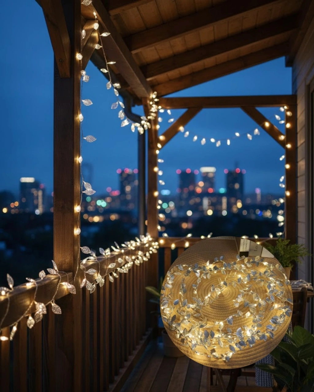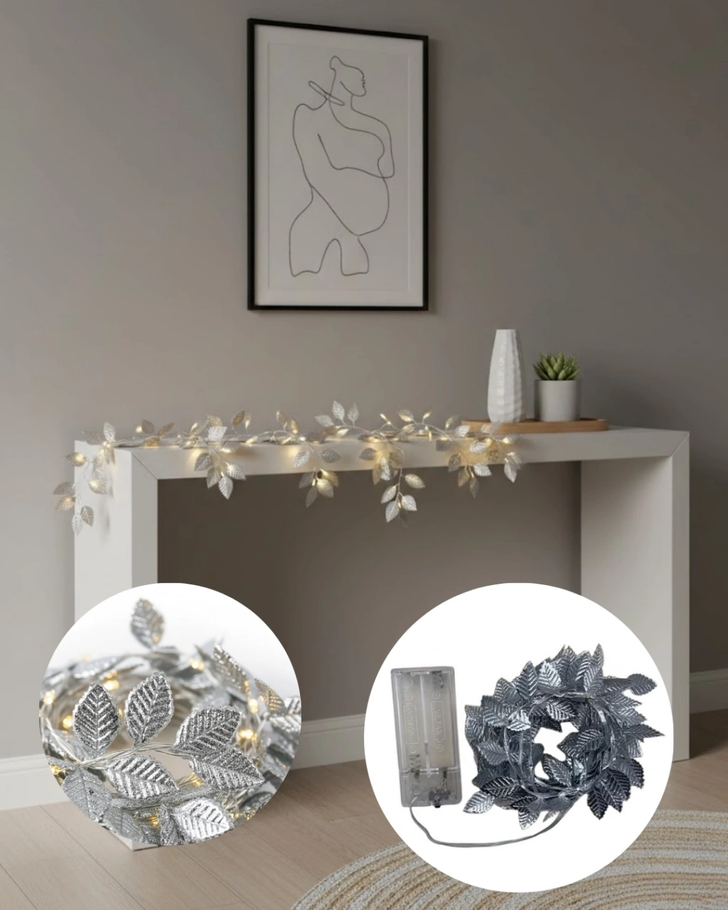 Gümüş Yaprak Tasarımlı LED Işık Pilli Ev ve Vitrin Dekoru