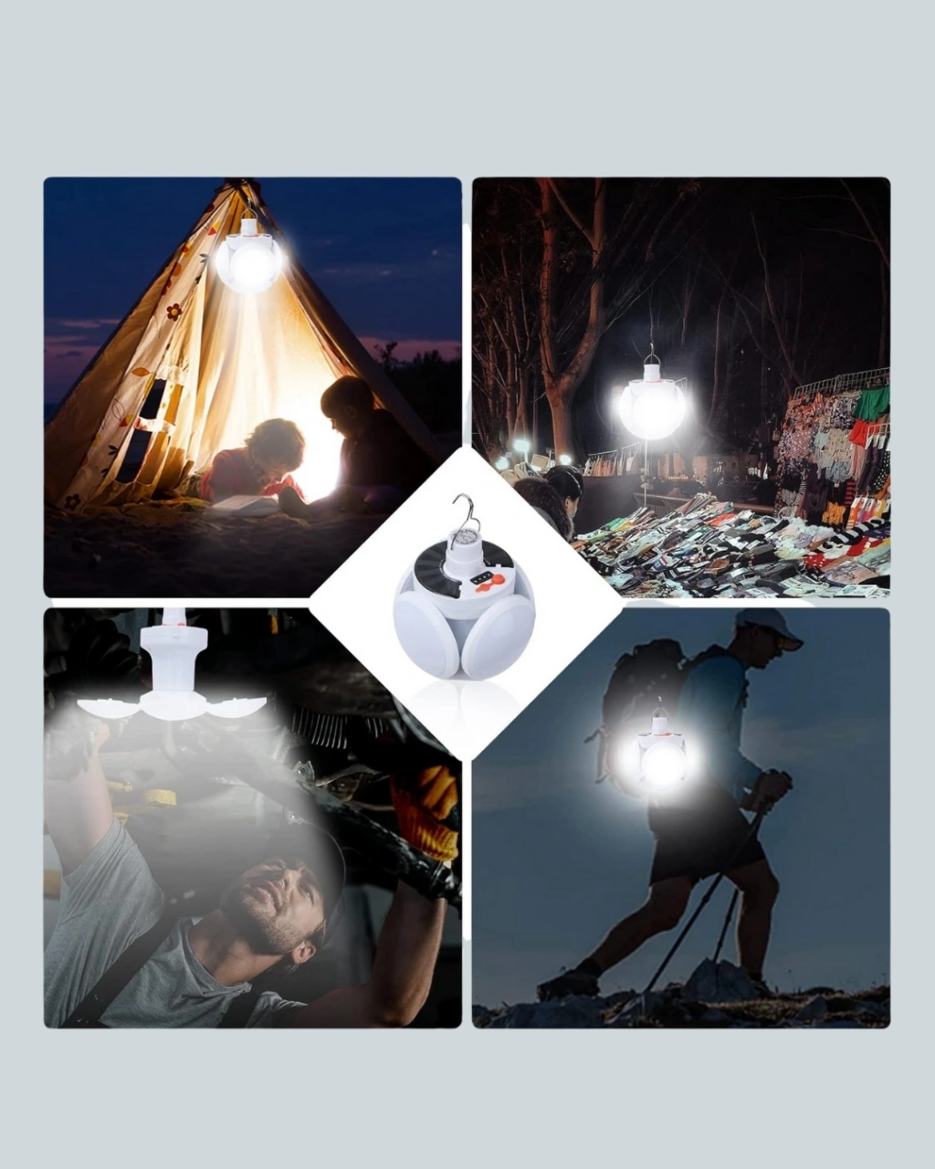 Güneş Paneliyle Şarj Olan Katlanabilir LED Çadır Lambası – 5 Kademeli Aydınlatma