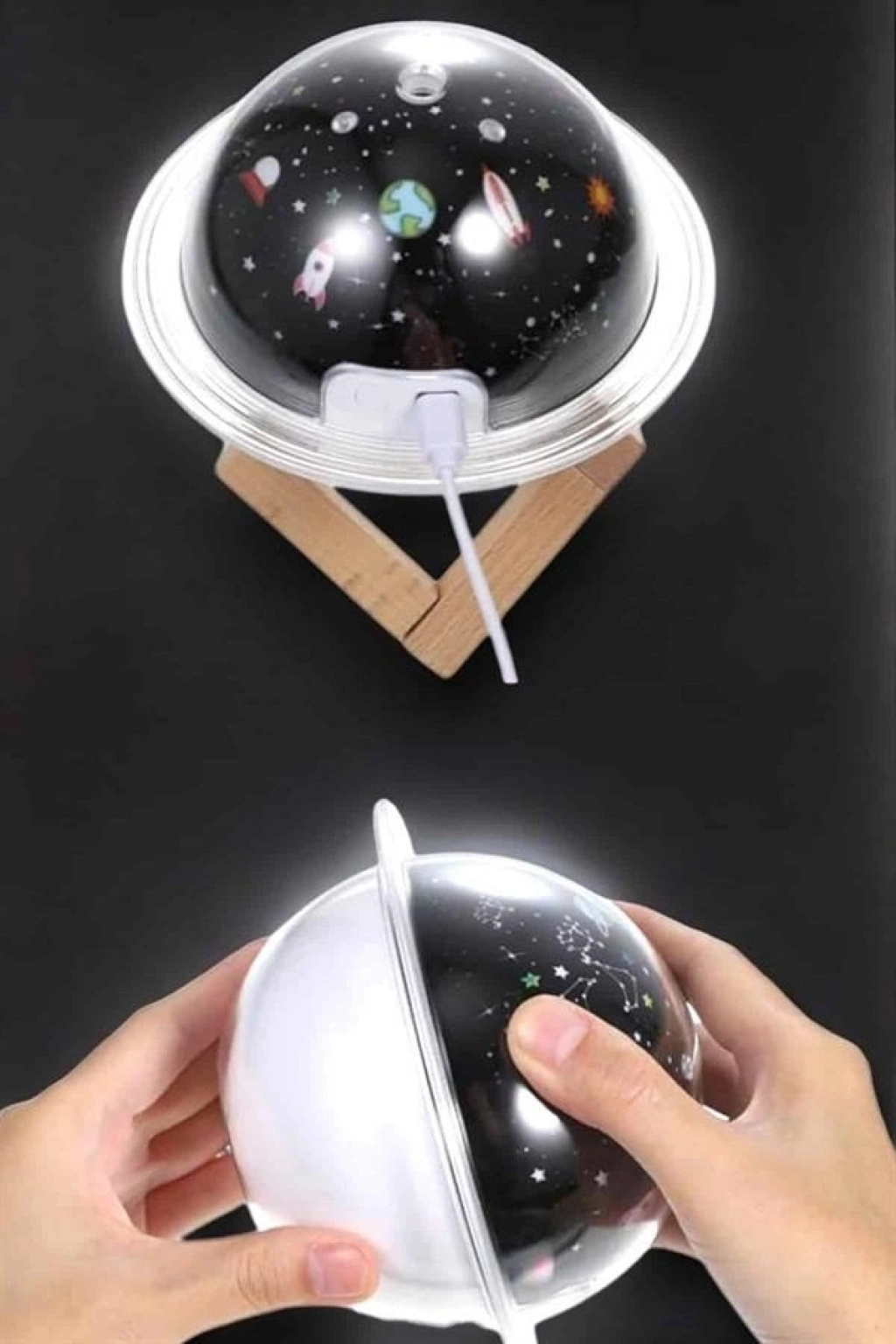 USB Projeksiyon Gece Lambası ve Ha Nemlendirici – Aromaterapi Destekli, Taşınabilir Mini