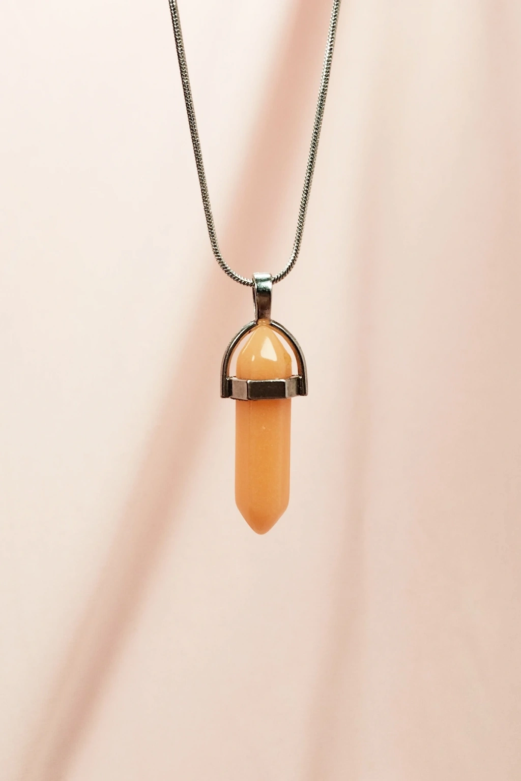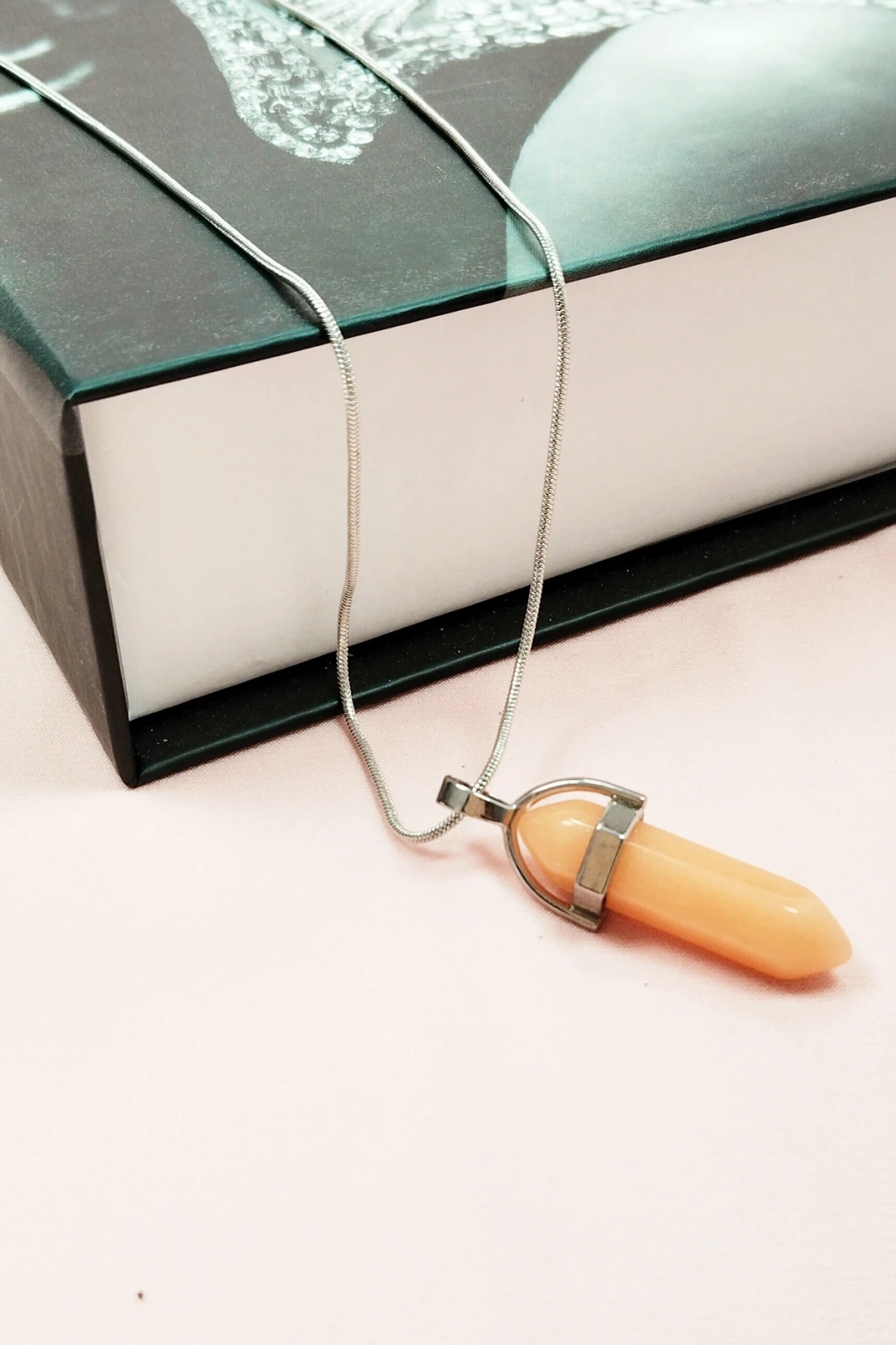 Pembe Akit Doğal Taşı Zincirli El Yapımı Tasarımlı Kolye Uç: 3,5 cm Zincir: 20 cm Kutulu