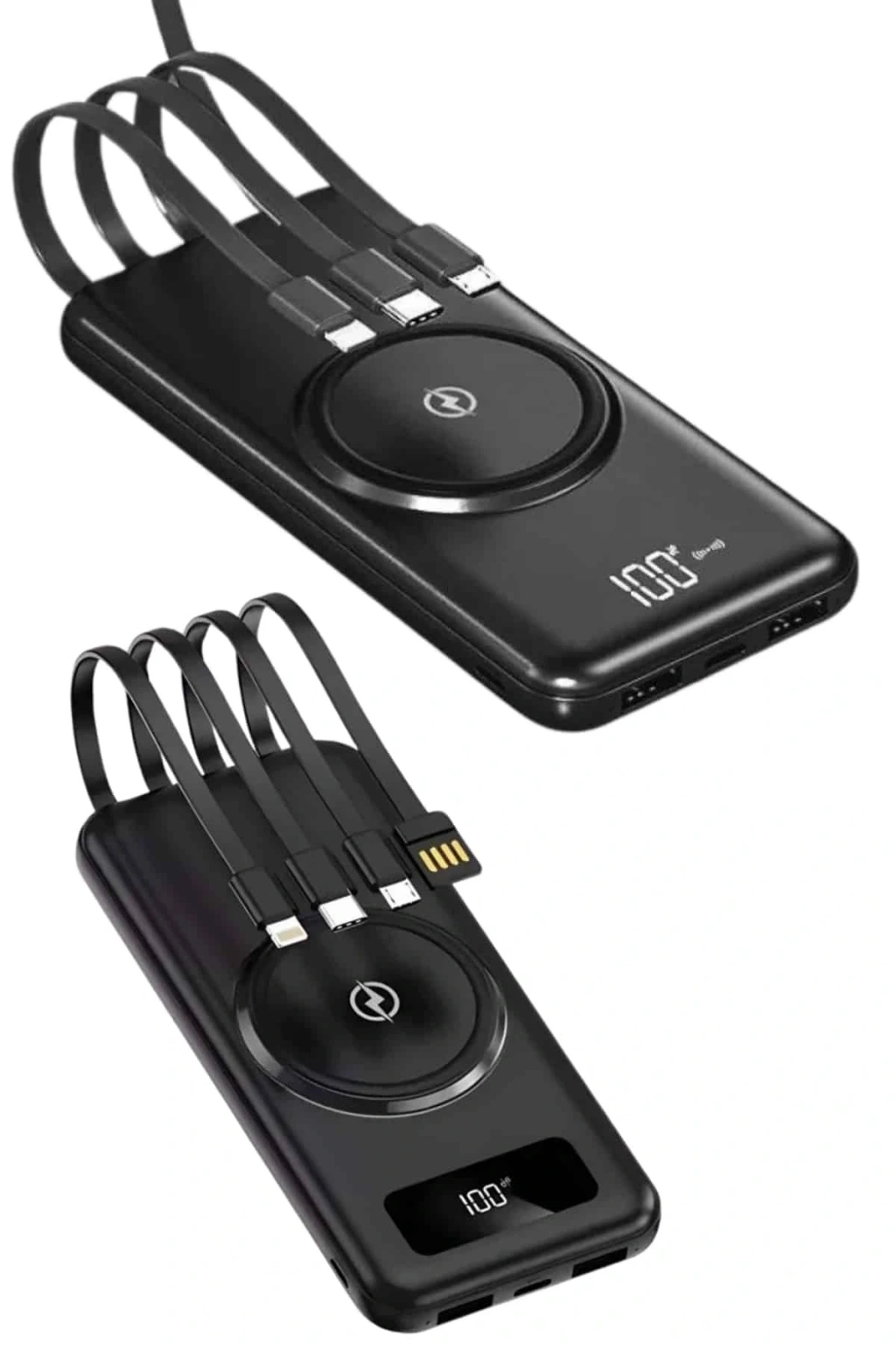 Kablosuz Çoklu Şarj Girişli 10.000 Mah Kablolu Powerbank Taşınabilir