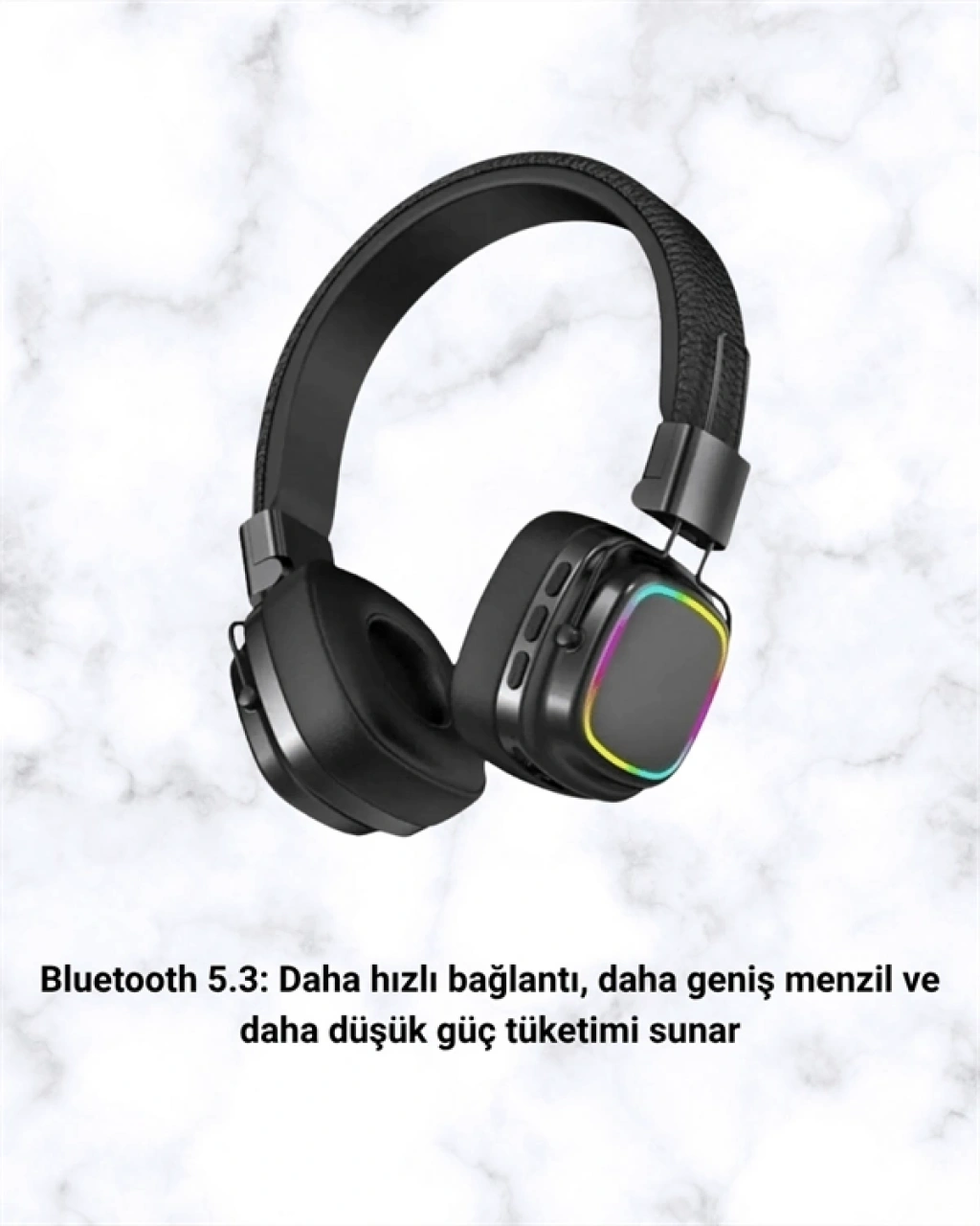 Kablosuz RGB Işıklı Katlanabilir Bluetooth Kulak Üstü Kulaklık