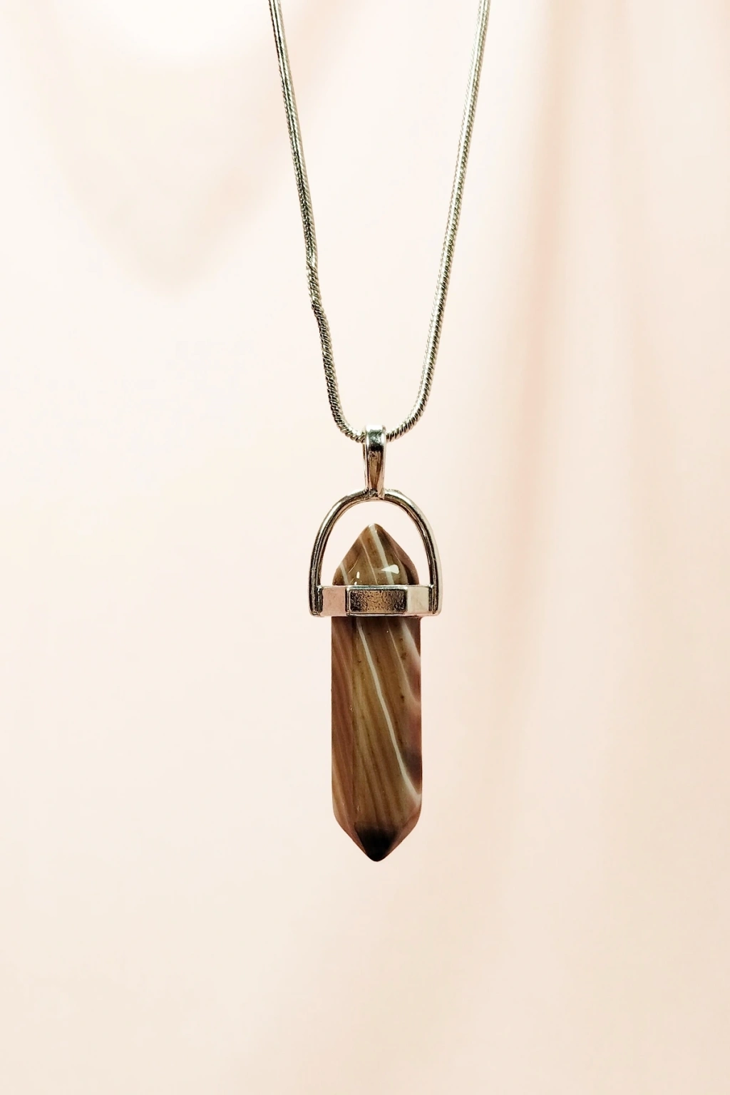 Kahverengi Akik Doğal Taşı Zincirli El Yapımı Tasarımlı Kolye Uç: 3,5 cm Zincir: 20 cm Kutulu